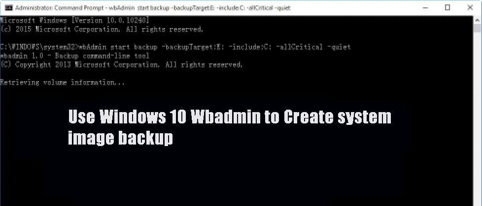 Use Windows 10 WBadmin to Create System Image Backup