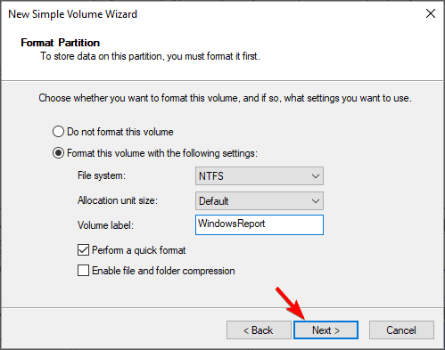 - When the wizard opens, click on Next. Then set Simple volume size in MB to the equal to the Maximum disk space in MB and click Next.