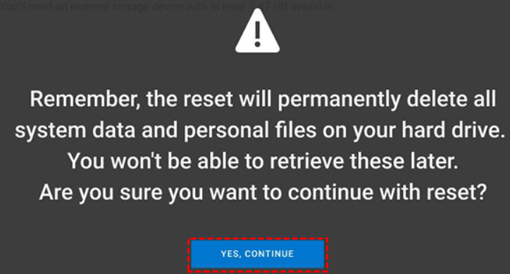 4. Read the warning message that is displayed, and click YES, CONTINUE.