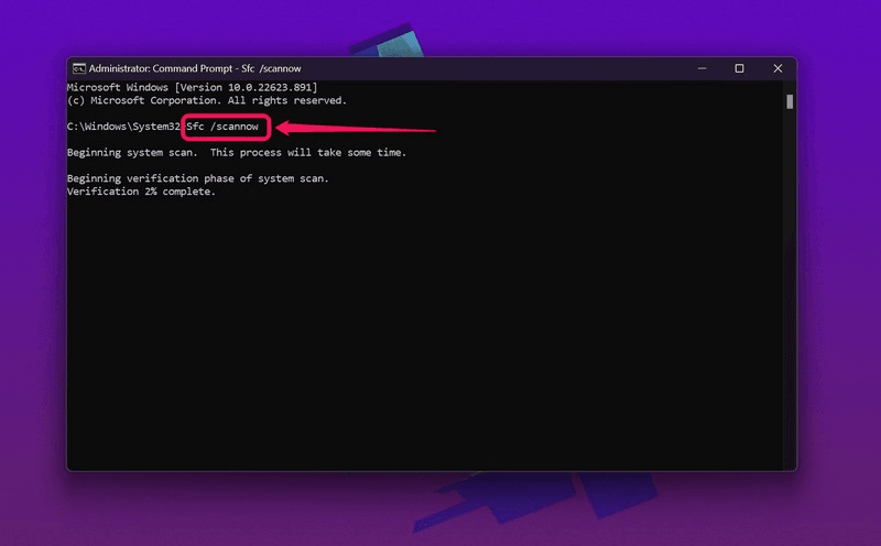 Step 2. Allow the scan to complete in its entirety. Avoid closing the Command Prompt tool during the scan process.