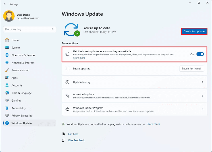 3. Turn on the switch to Get the latest updates as soon as they're available.