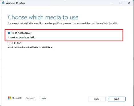 3. Select the "USB flash drive" option and select the flash drive from the list.
