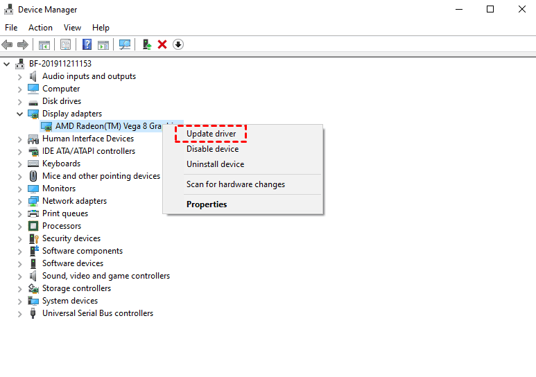 Step 3. Under Display Adapters, right-click the adapter, then select Update driver.