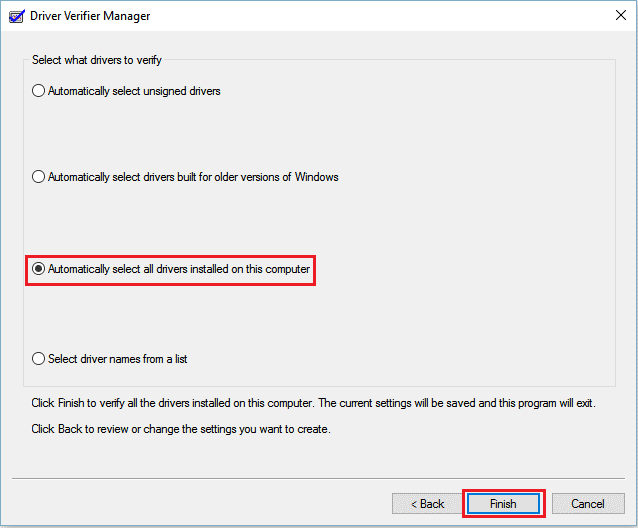Step 4. Select Automatically select all drivers installed on this computer, and then click the Finish button.