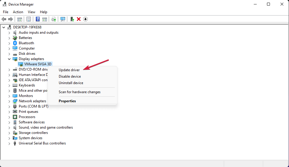 Step 3. If you come across one, right-click on it and choose Update driver.