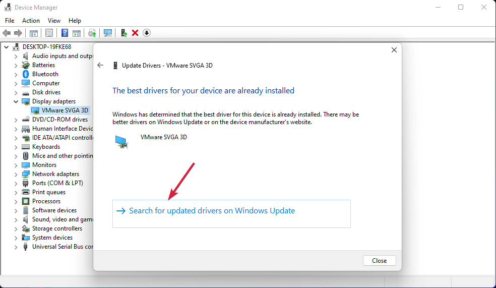 Step 5. If a new driver is detected by the system, it will install it, and you will receive a prompt to restart. If not, you can click on Search for updated drivers on Windows Update.