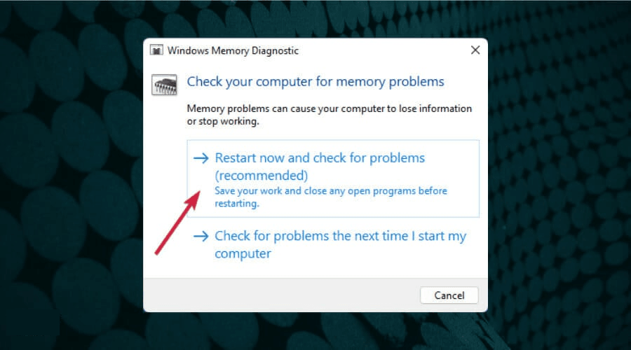 If the tool detects a problem, it is often related to faulty RAM modules. Check the compatibility and proper insertion of recently replaced modules. Afterward, confirm if the Memory Management error in Windows 11 has been resolved.