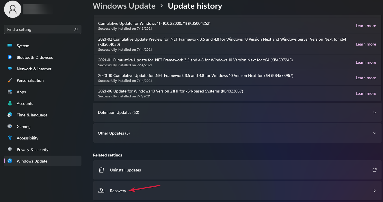 Step 2. Select System from the left pane, then scroll down in the right pane and click on Recovery.