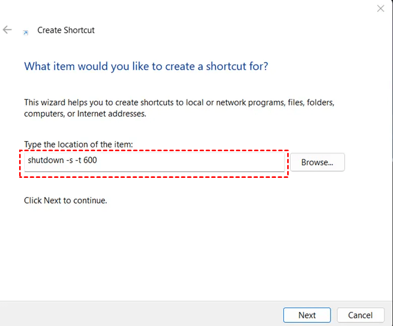 Way 4. Automatic shutdown Windows 11 via Desktop Shortcut