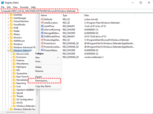 Way 3. Turn off Microsoft Defender using Registry Editor on Windows 11 (Permanently)