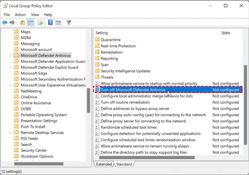 - Computer Configuration > Administrative Templates > Windows Components > Microsoft Defender Antivirus