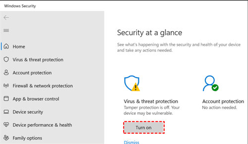 - If you want to re-enable it, you don’t have to go back into Group Policy. Instead, you can click the Turn on button from the Windows Security app.