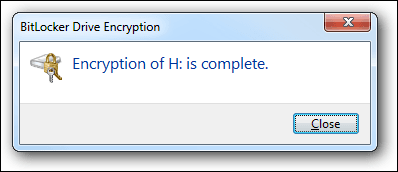 Step 6. When the encryption process is finished you will see a message that the encryption is complete.