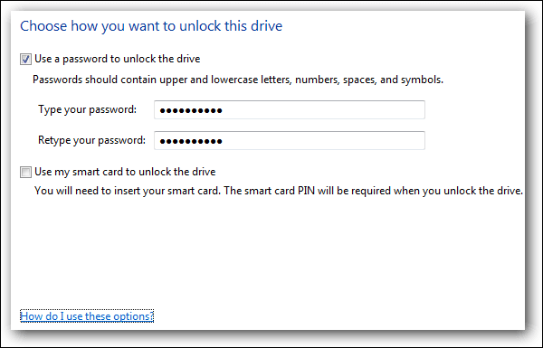 Step 3. The BitLocker will start and will ask you how you want to unlock the drive. Choose the Use a password to unlock the drive option and type your password.