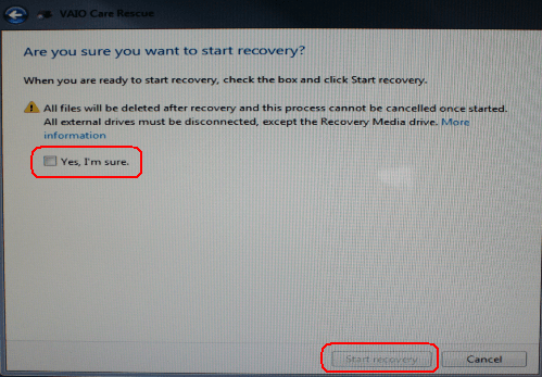 11. When asked “Are you sure you want to start recovery?”, click Yes, I'm sure and then click the Start Recovery button.